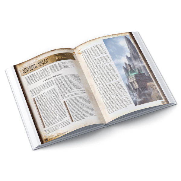 - optionale Szenarien und Abenteuerskizzen, die sich vor, zwischen und nach den Abenteuern der Kampagne einbauen lassen, um die Handlung zu erweitern,