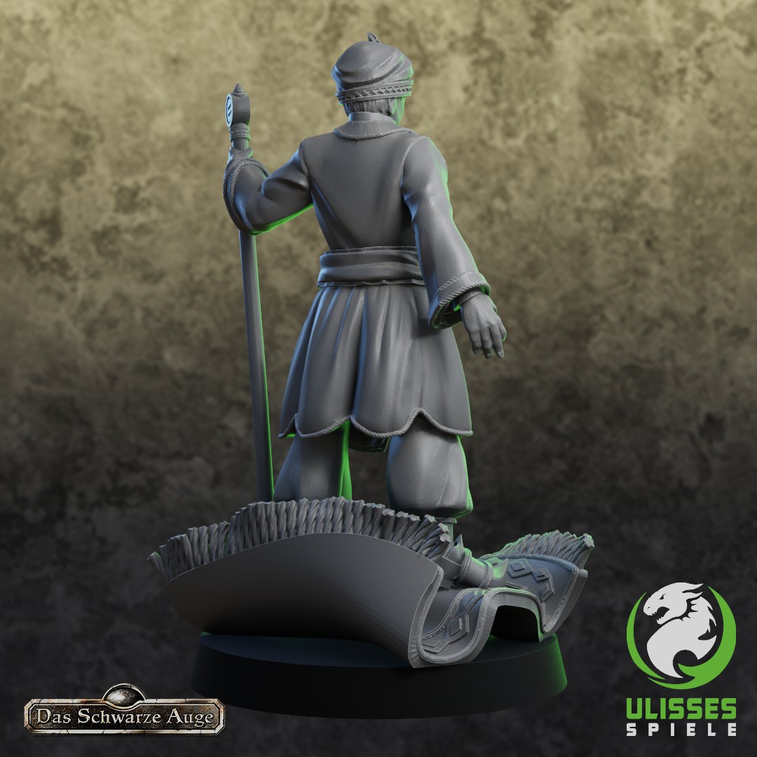 Hol dir die schillerndste Persönlichkeit der aventurischen Gildenmagie an den Spieltisch: Thomeg Atherion, Erzmagier und Spektabilität der Akademie der Geistigen Kraft zu Fasar. Er ist nicht nur bekannt für seine Skrupellosigkeit, die ihn unberechenbar macht, nein er ist auch bekannt dafür, ein meisterlicher Beschwörer und Teil der Herrschaftselite Fasars zu sein. Ein mächtiger Schwarzmagier, den man besser an seiner Seite weiß – im Spiel und als kleine Miniatur auf dem Spielplan.
