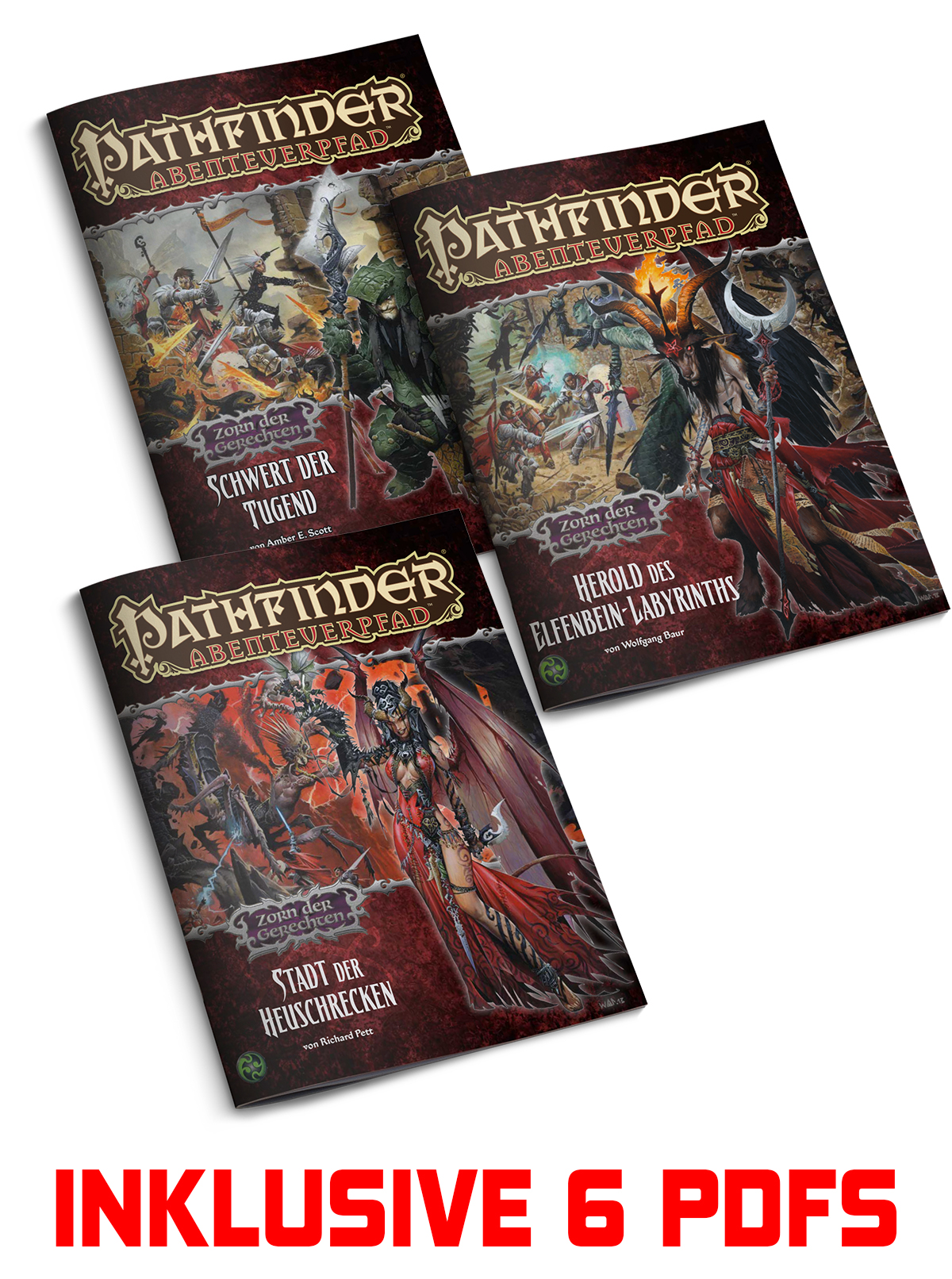 Dieses Pathfinder Abenteuer Bundle enthält mehrere Bände des epischen Abenteuerpfads Zorn der Gerechten sowie alle zugehörigen digitalen Ausgaben, damit du die gesamte Kampagne vollständig spielen kannst.