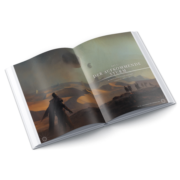 - Akt IV: Eine Million Welten im Krieg: Paul Atreides ist der neue Imperator des Imperiums und alles hat sich verändert. Seine Fremen-Legionen bringen ihre Religion mit Feuer und Stahl zu jedem, der sich widersetzt. Hundert Verschwörungen und Gegenrevolutionen wirbeln im Sturm des Dschihad. Werden die Spielercharaktere und ihr Haus vor Muad‘Dib niederknien oder sich auf die Seite der anderen stellen, um die schlimmsten Gräueltaten zu verhindern? Die Zeit des Imperiums neigt sich dem Ende zu. Wird dein Haus gedeihen oder nur ein weiteres vergessenes Opfer in einem Krieg über eine Million Welten werden?