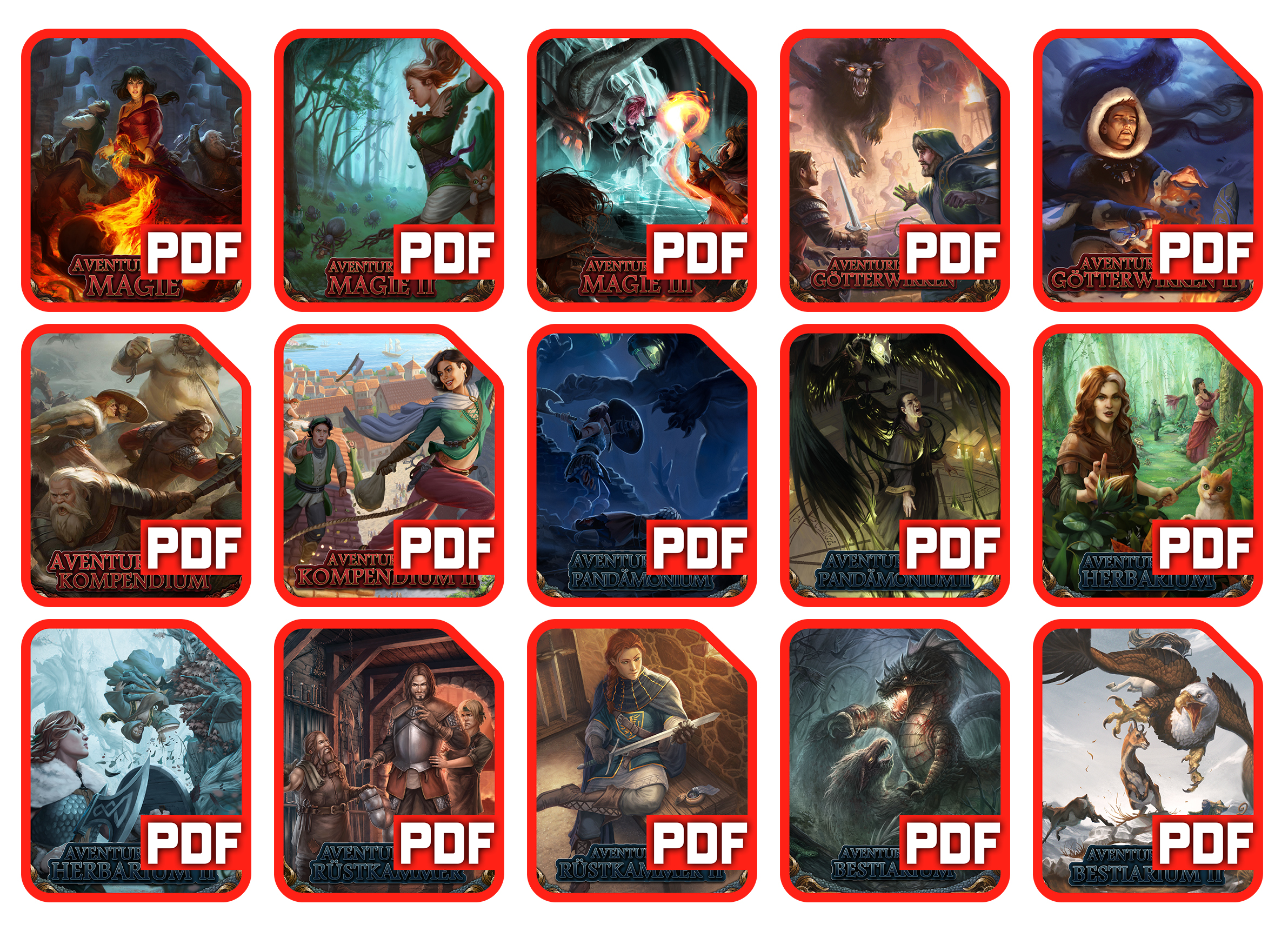 Doch damit nicht genug: Als besonderes Geschenk Hesindes erhältst du zusätzlich ein gewaltiges PDF-Paket im Wert von über 270 €! Dieses umfasst ganze 15 digitale Bände, mit denen du Zugriff auf einen großen Teil der bisher erschienenen DSA5-Regelerweiterungen bekommst. Die PDFs werden dir am 24.11. zugeschickt. Der Versand der physischen Bände findet bereits am 03.11. statt.