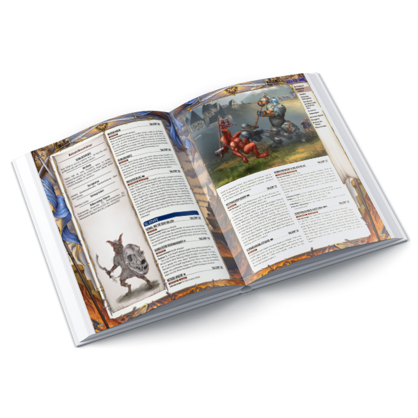 Darüber hinaus enthält der Band eine umfassende Rüstkammer mit Belagerungswaffen, ein Bestiarium mit neuen Trupptypen und Regeln für Massengefechte, bei denen du Seite an Seite mit deinen Einheiten kämpfst.