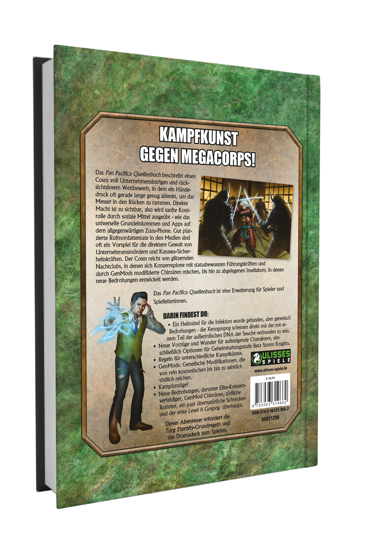 Das Pan Pacifica Quellenbuch beschreibt einen Cosm voll Unternehmensintrigen und rücksichtslosem Wettbewerb, in dem ein Händedruck oft gerade lange genug ablenkt, um das Messer in den Rücken zu rammen. Direkte Macht ist zu sichtbar, also wird sanfte Kontrolle durch soziale Mittel ausgeübt - wie das universelle Grundeinkommen und Apps auf dem allgegenwärtigen Zuzu-Phone. Gut platzierte Rufmordattentate in den Medien sind oft ein Vorspiel für die direktere Gewalt von Unternehmensmördern und Kanawa-Sicherheitskräften. Der Cosm reicht von glitzernden Nachtclubs, in denen sich Konzernspione mit statusbewussten Führungskräften und durch GenMods modifizierte Chimären mischen, bis hin zu abgelegenen Insellabors, in denen neue Bedrohungen entwickelt werden.