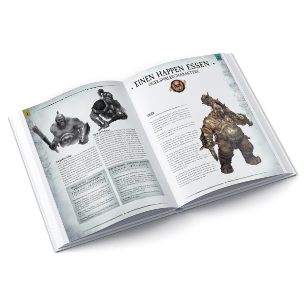 Oger des Imperiums: Zwei Kapitel widmen sich den Ogern, ihrem Platz im Imperium und am Spieltisch. Darin enthalten sind drei neue Karrieren, darunter der furchterregende Oger-Fleischer, der die Magie des Großen Schlunds mit blutigen Riten wirkt.